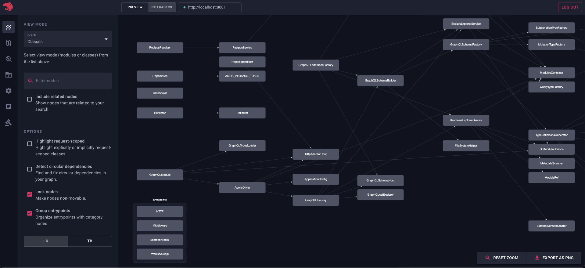 Now every time your application fails to bootstrap due to the "Cannot resolve dependency" error, you'll find the graph.json (that represents a partial graph) file in the root directory. You can then drag & drop this file into Devtools (make sure to switch the current mode from "Interactive" to "Preview"):